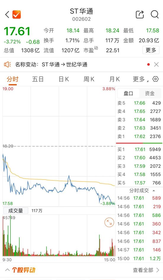 截至11月10日收盘,ST华通跌3.72%,报17.61元/股。